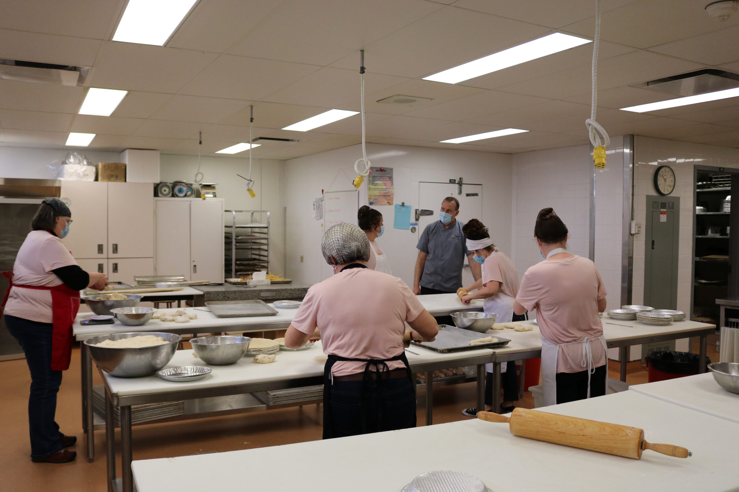 Sous la supervision de leurs enseignants Nicolas Turmel et Pascal de Bellefeuille, les élèves de la cuisine ont préparé de la sauce à spaghetti ainsi que des pâtés à la viande, au poulet et au saumon afin de venir en aide aux femmes et aux enfants bénéficiant des services de l’organisme. Quelques employés du Havre des femmes ont également contribué à la