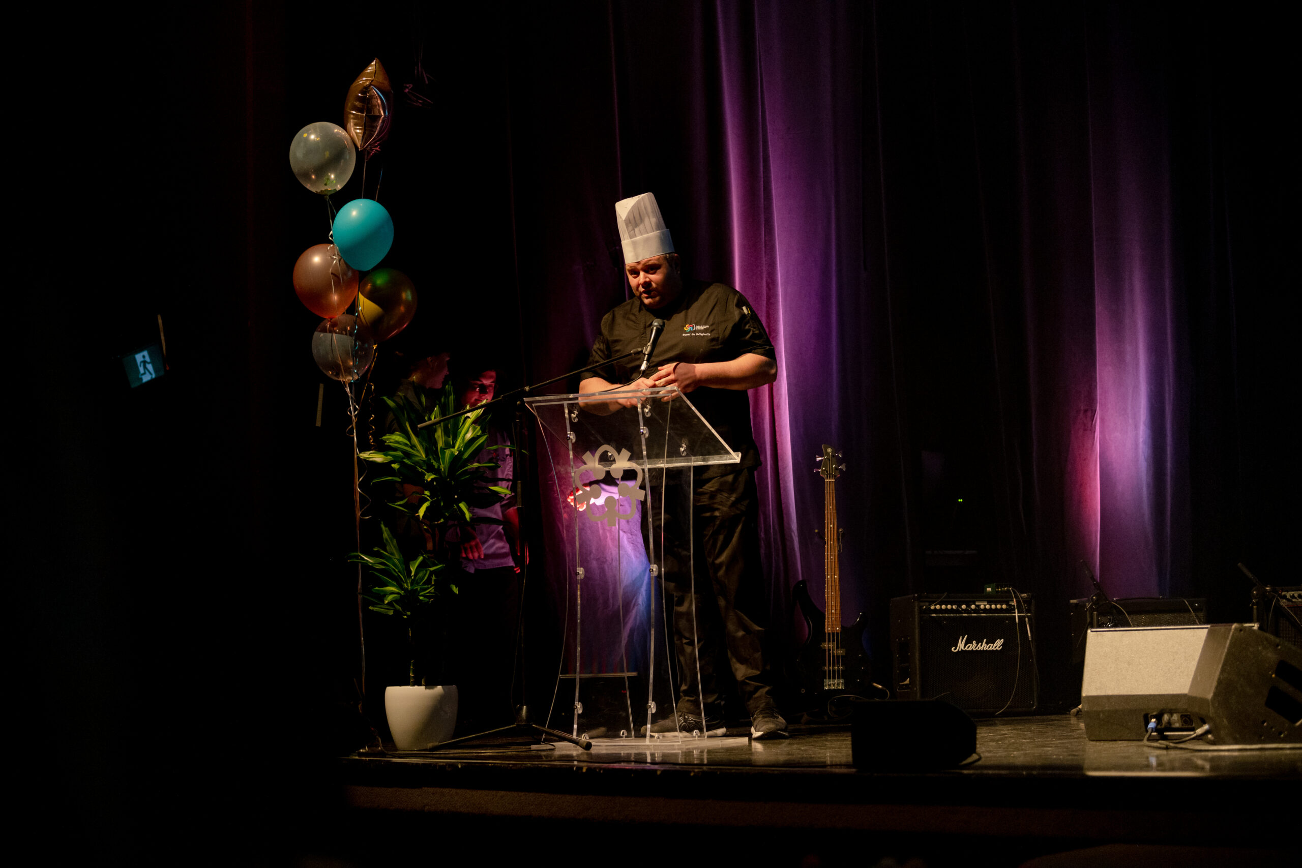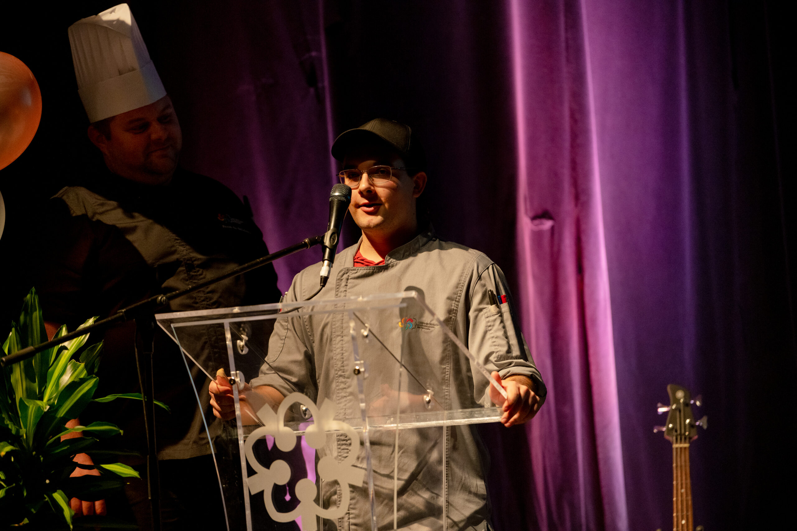 Les élèves du Service de la restauration ont élaboré un délicieux cocktail sans alcool à base de sirop simple à la menthe et aux framboises, framboises fraîches et eau pétillante au pamplemousse spécialement pour l’événement. Ils ont également assuré un service aux tables impeccable grâce à leur savoir-faire.