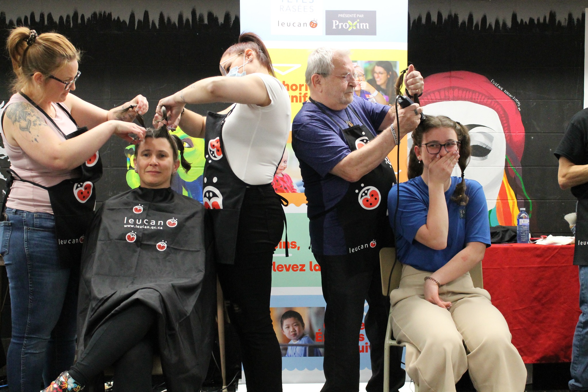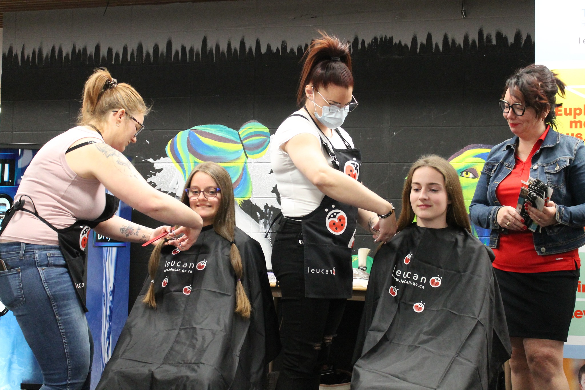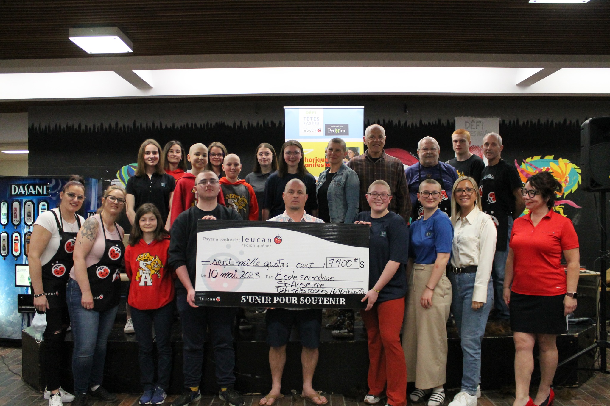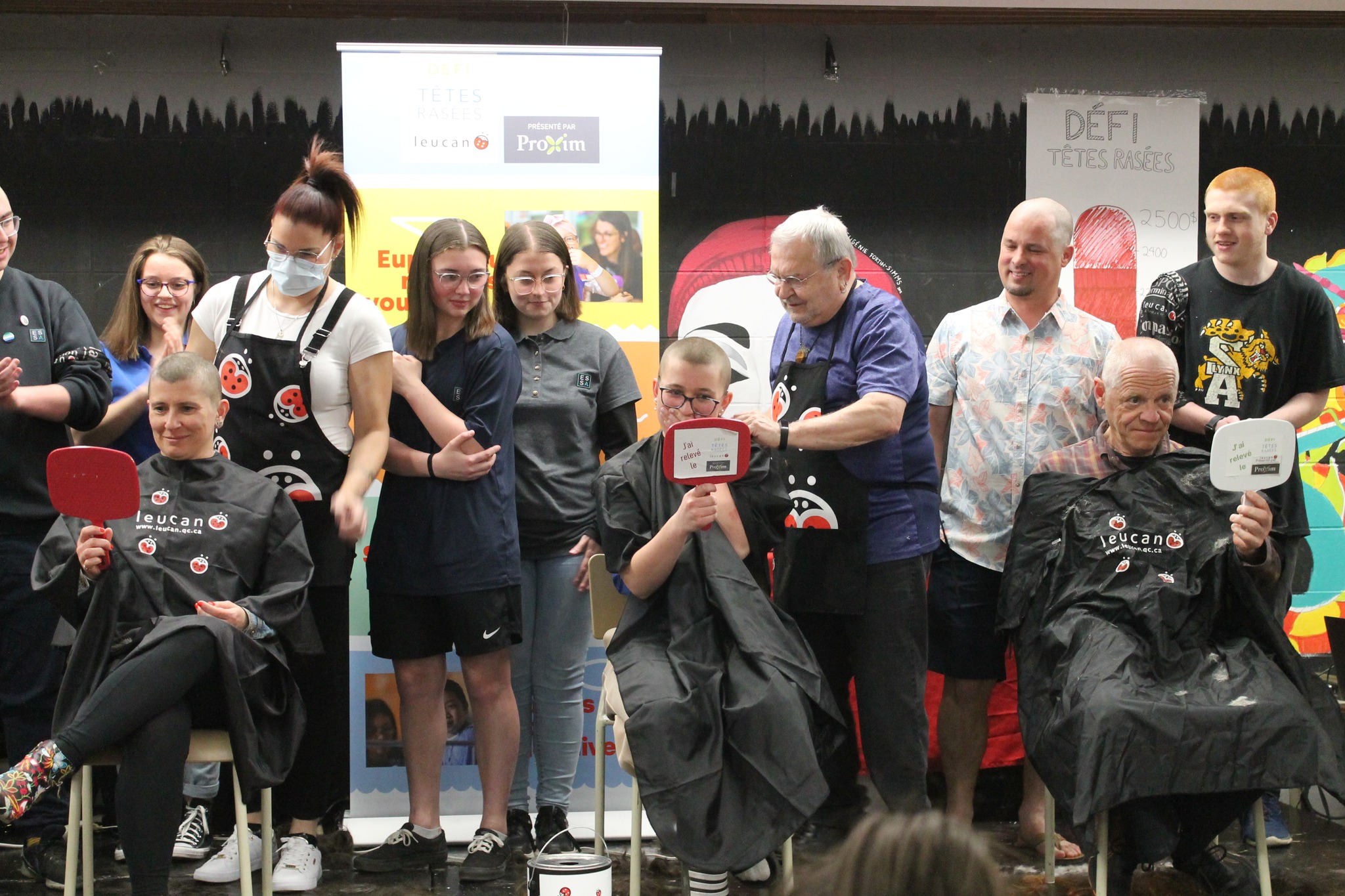 Félicitions à Alycia Robitaille, Annick Bélanger, Coralie Bélanger, Coralee Desroches, Éloise Bernier, Jean-Raphael Tremblay, Jonathan Noël, Juliette Gagnon, Mathis Garon, Mia Lacasse, Noah Garon et Norah Fournier, élèves de l’école, Amélie Roy et Patrick Maheu, membres du personnel, Lysanne Fournier et Gilles Bernier, membres de la famille d’une élève, qui ont fait le choix de faire don de leurs cheveux en échange de précieux dons.
