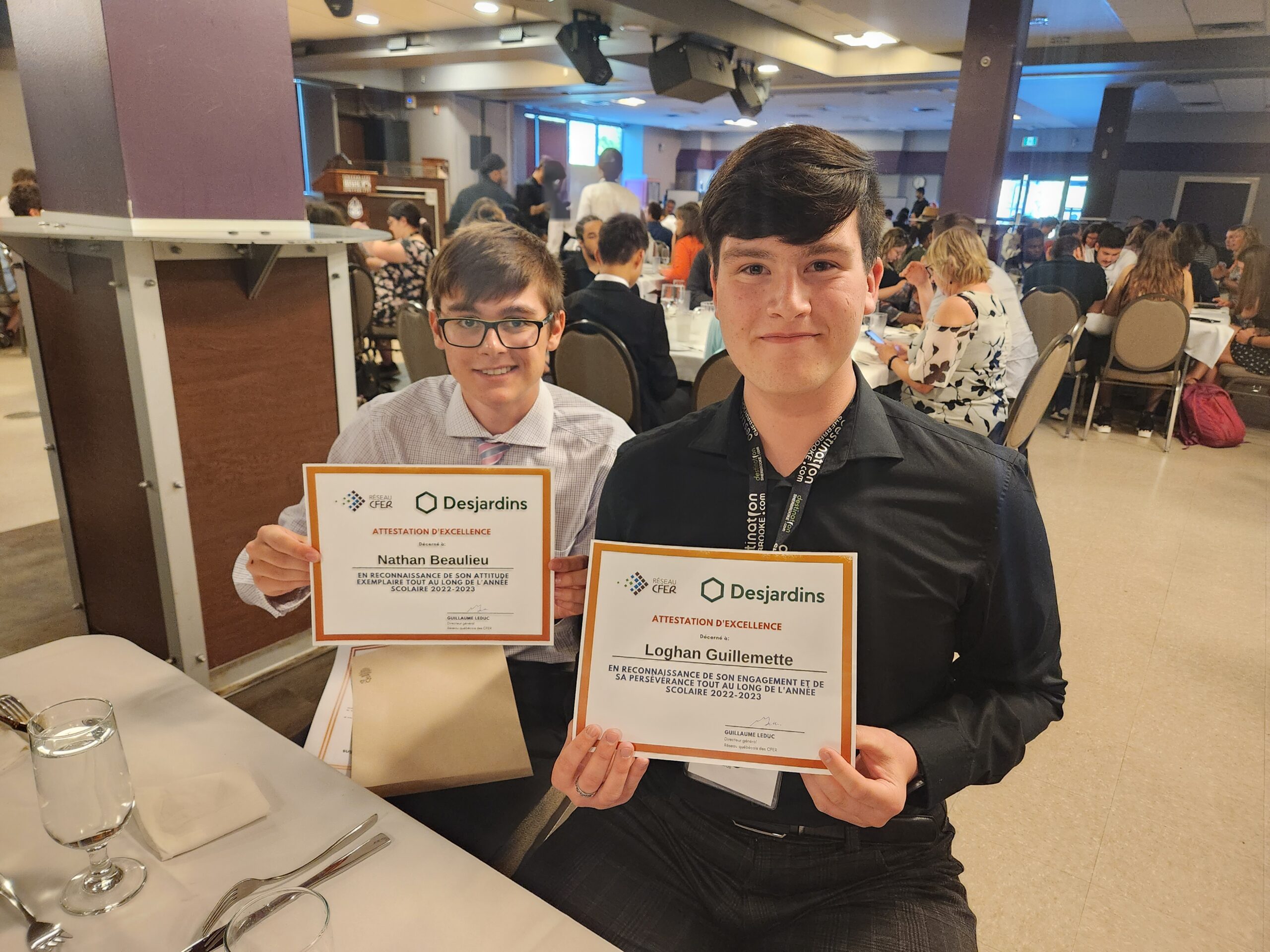 De plus, Nathan Beaulieu s’est mérité un certificat et une bourse Desjardins dans la catégorie Attitude. Loghan Guillemette a, lui aussi, remporté un certificat et une bourse pour le prix Engagement et sa persévérance. Mathis Lacasse a, quant à lui, mérité une médaille pour avoir été le joueur ayant eu le plus d’impact sur son équipe.