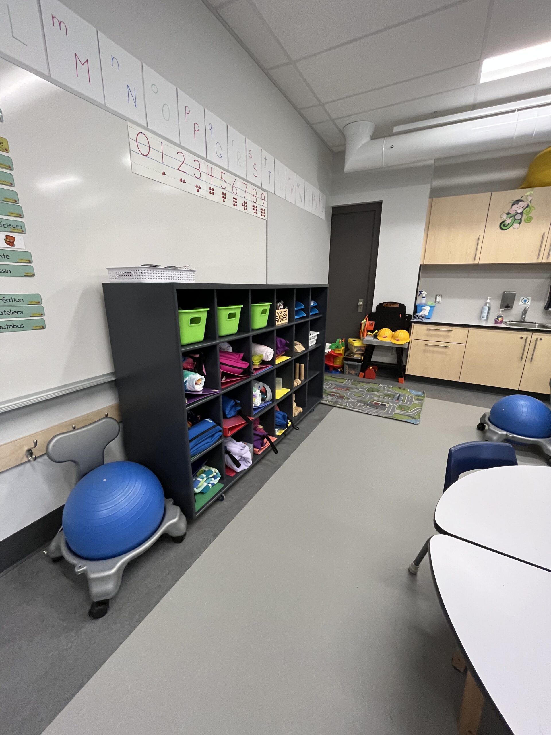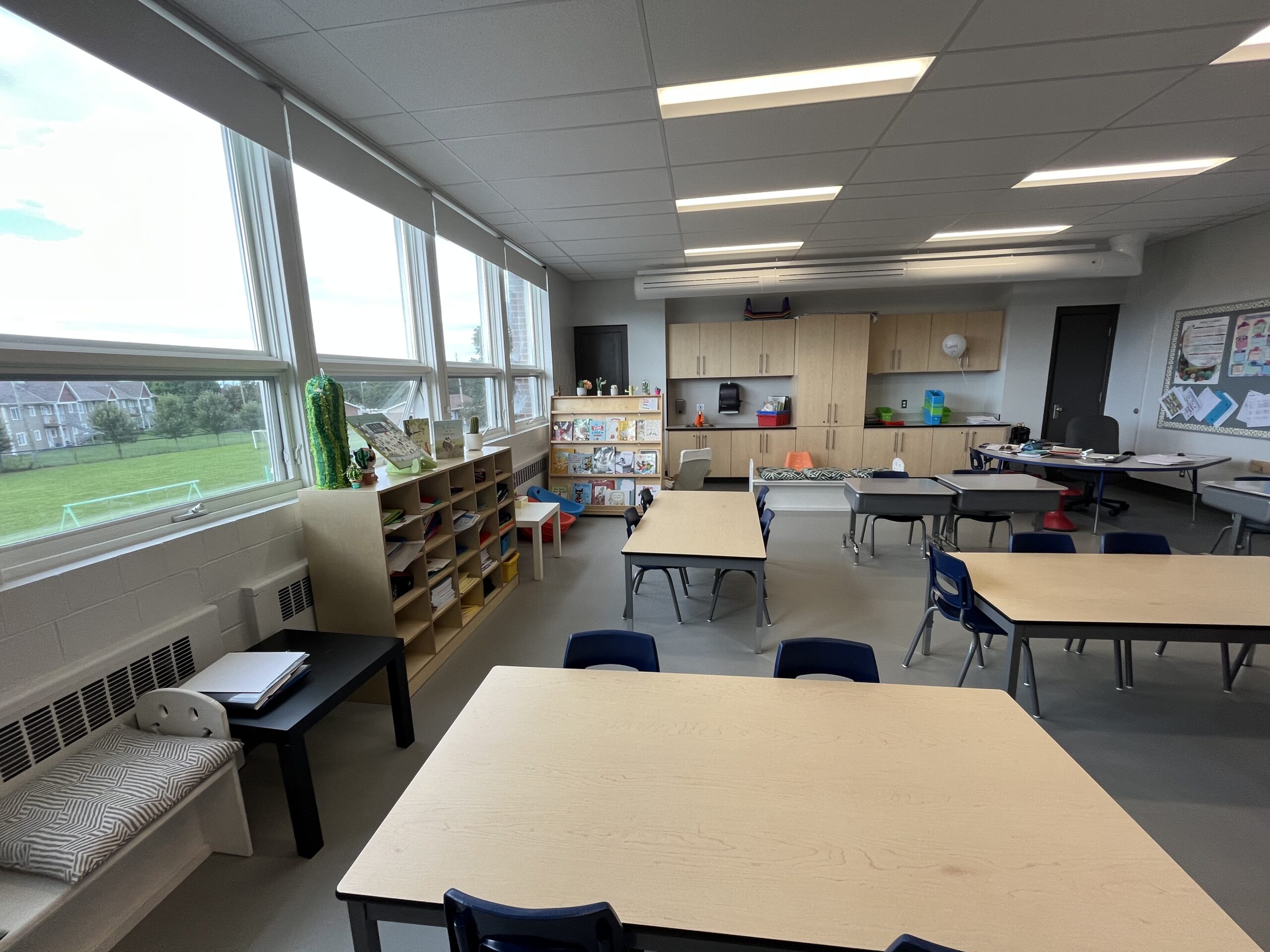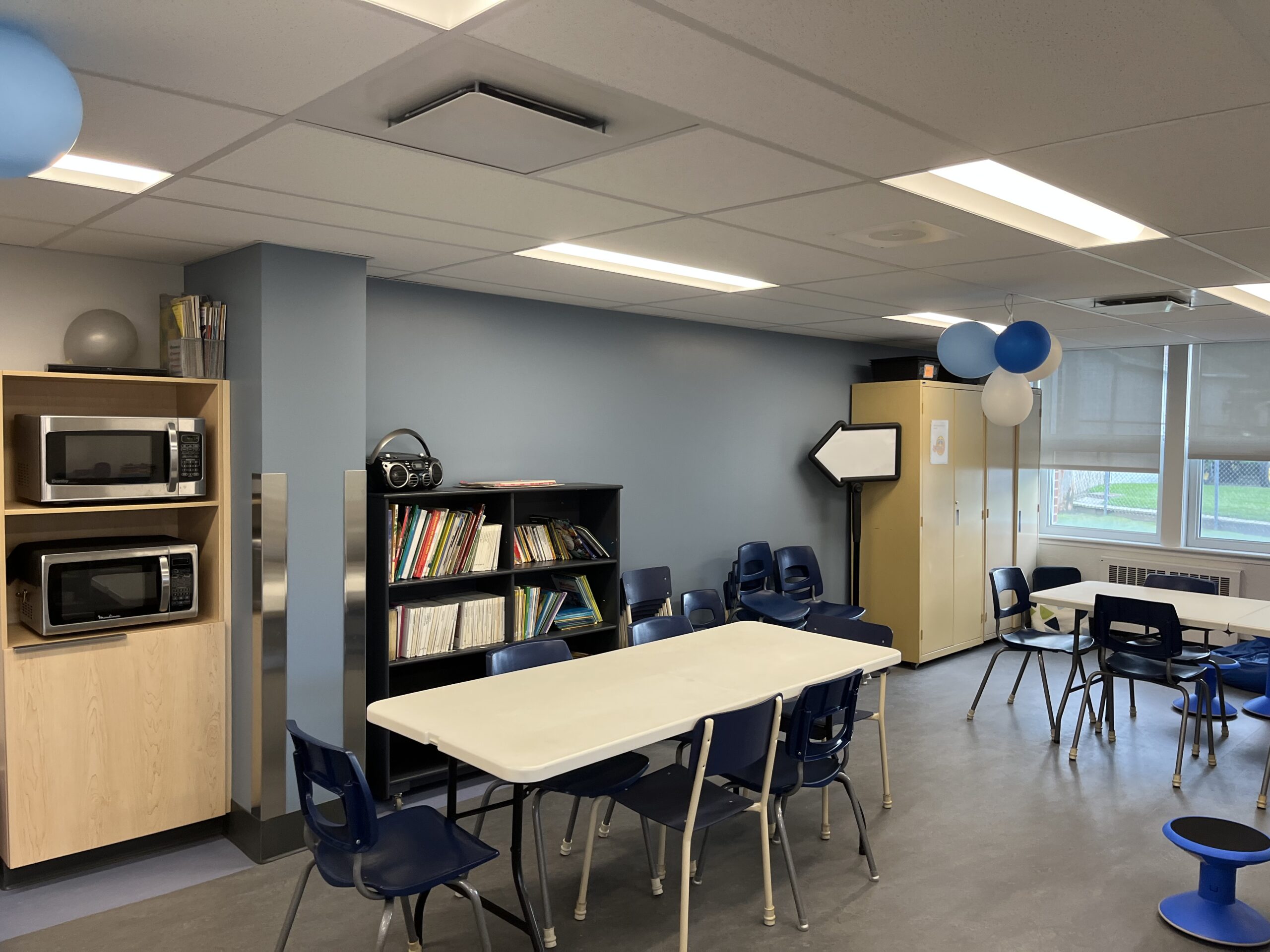 L’ensemble des locaux ont subi une importante cure de rajeunissement. En ce sens, la plomberie, l’électricité, les finis intérieurs et la peinture ont été entièrement refaits. Un nouveau système de ventilation a également été ajouté. Du rangement intégré a été ajouté dans les différents locaux de l’école afin de faciliter l’organisation.