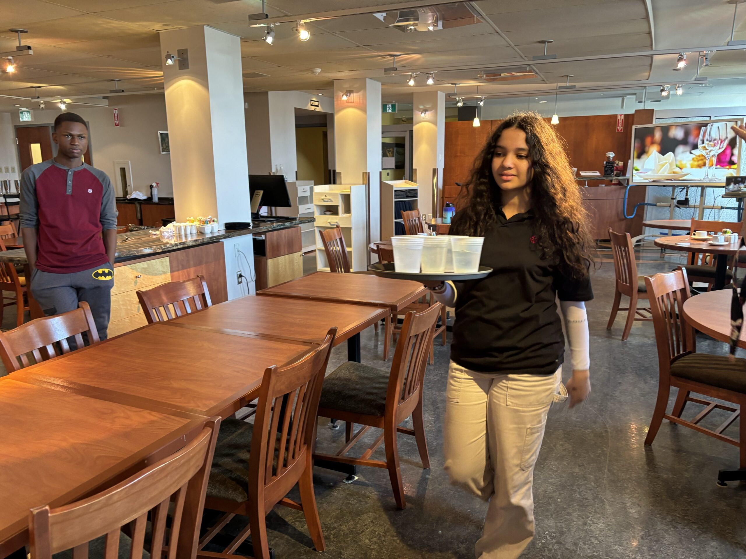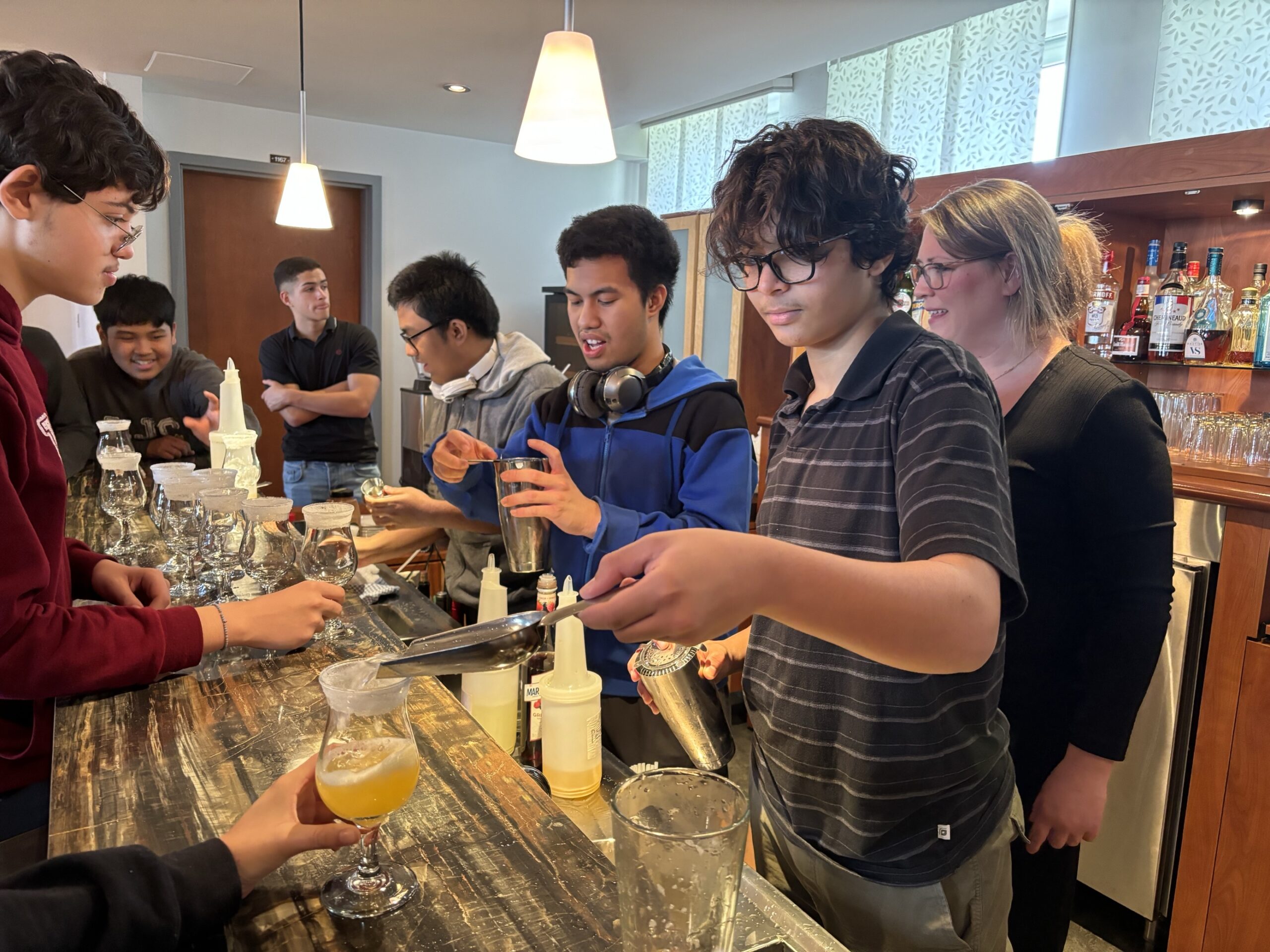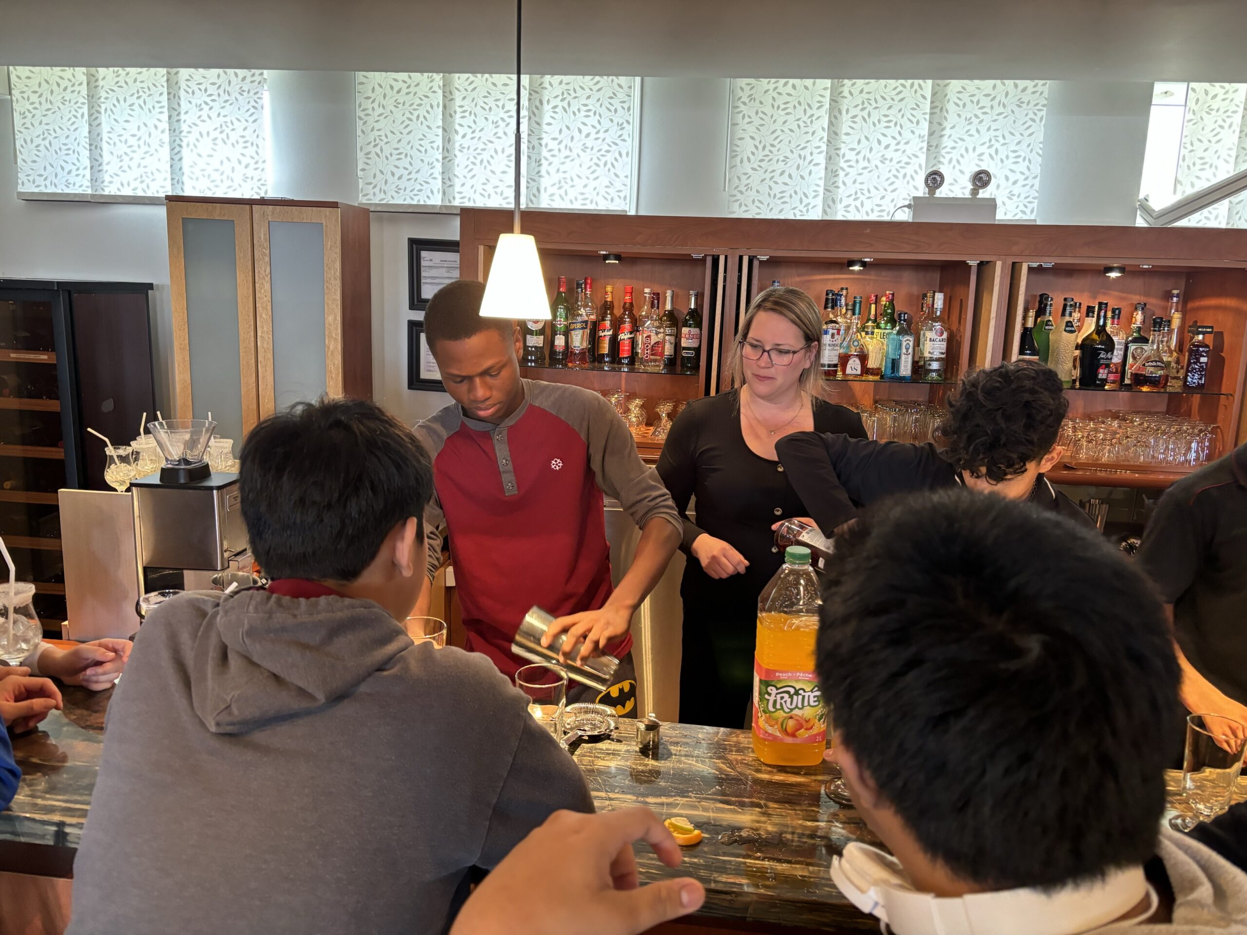 Les élèves ont vécu trois activités au CFP de l’Envolée. Ils ont d’abord assisté à un atelier de création de mocktails encadré par Bianka Thibault, enseignante en Service de la restauration. Les élèves ont eu beaucoup de plaisir à élaborer des breuvages remplis de saveurs et à les déguster!