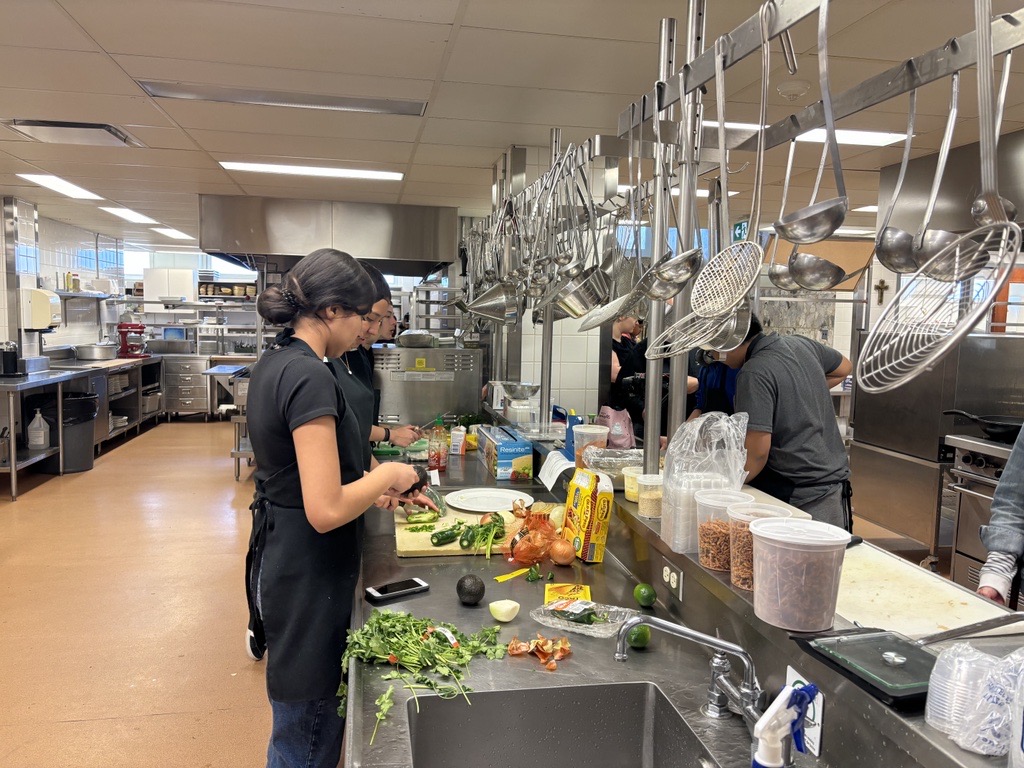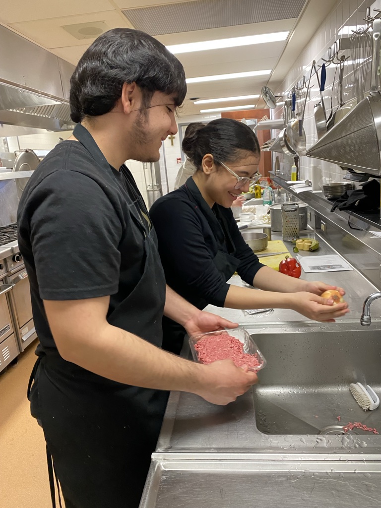 En effet, comme troisième activité, les élèves ont eu la chance d’utiliser la cuisine professionnelle afin de concocter de délicieux plats aux saveurs de leur pays d’origine. L’exercice était supervisé par Pascal de Bellefeuille, chef et enseignant en cuisine. Préalablement, les élèves ont dressé leur liste d’épicerie afin que les enseignantes puissent fournir les ingrédients requis.