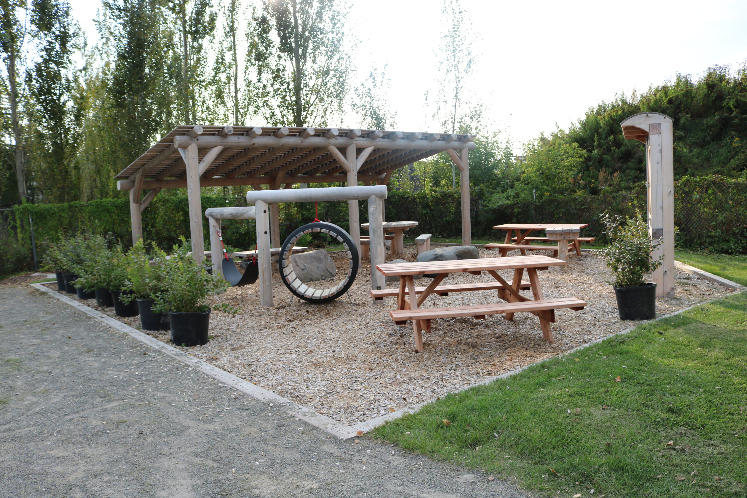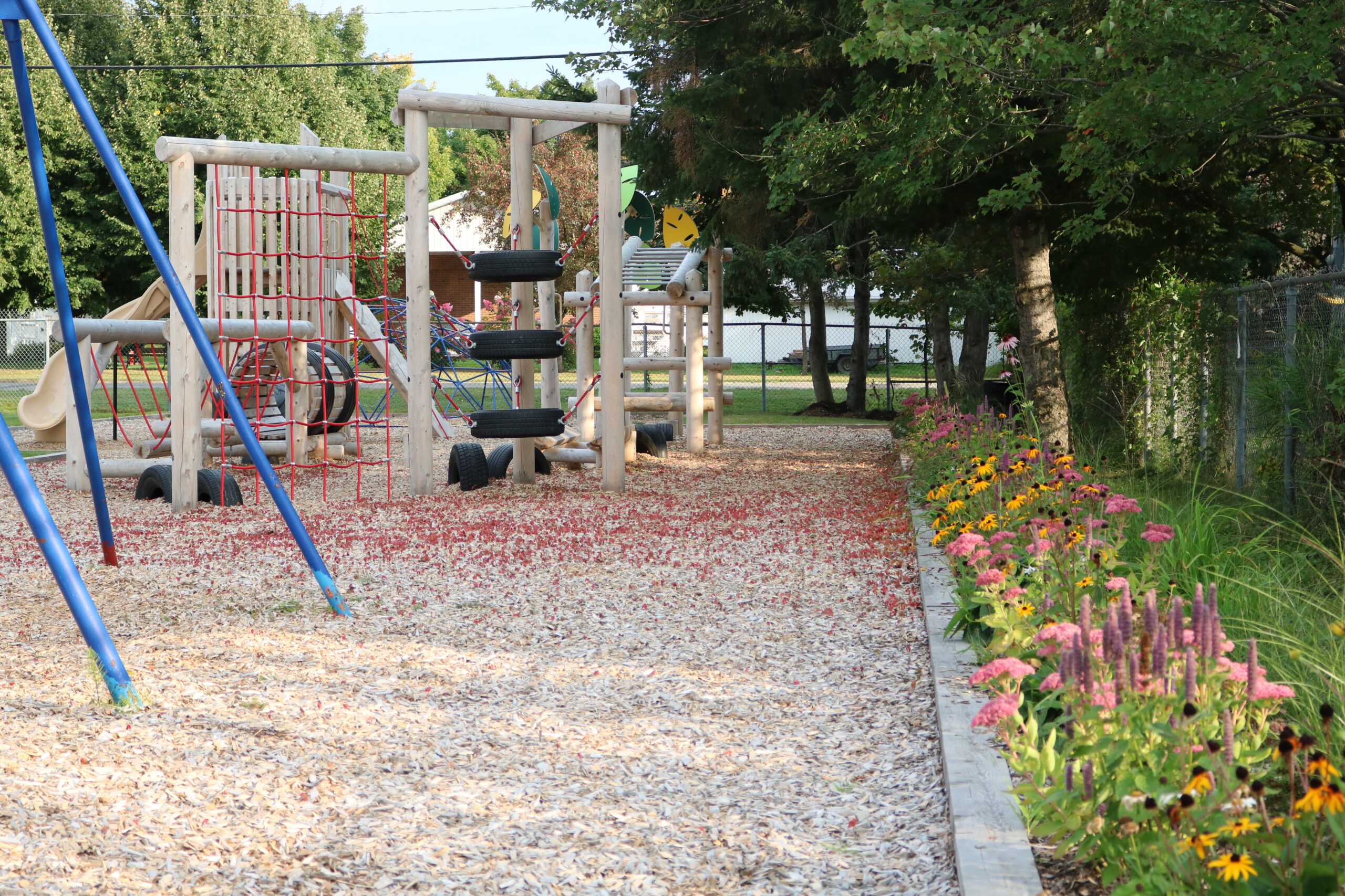 Les élèves ont maintenant accès à un parcours d’agilité inspiré de l’hébertisme, une maisonnette, des glissades, différents défis grimpeurs et un carré de sable pour le plaisir des petits et des grands. De plus, un espace dédié à l’enseignement en plein air a également été aménagé et un sentier sillonne la cour pour faciliter son accès.