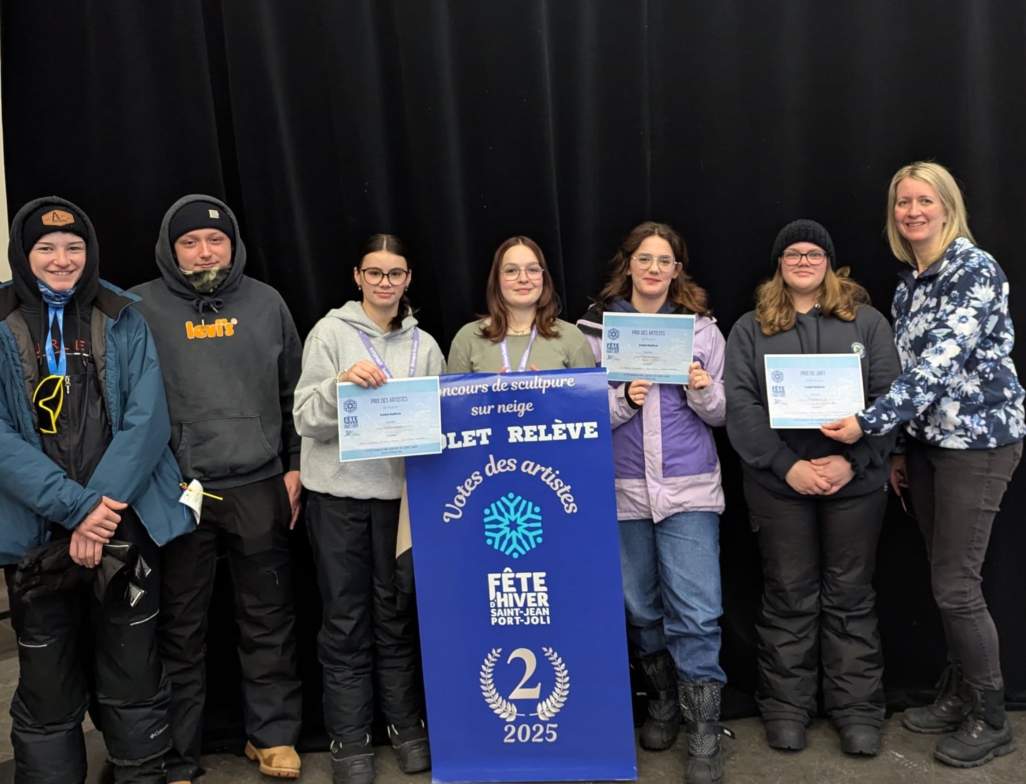 Depuis plusieurs années, Mme Myriam Cloutier, enseignante d’art à l’école secondaire de Saint-Paul, forme des équipes avec ses élèves pour participer au concours de sculpture sur neige de la Fête d’hiver de Saint-Jean-Port-Joli. Depuis 2022, l’école se démarque à ce concours dans le volet relève, et cette année, ils ont récidivé grâce à la création de deux sculptures tout simplement magnifiques : Beauté naturelle et Revanche.