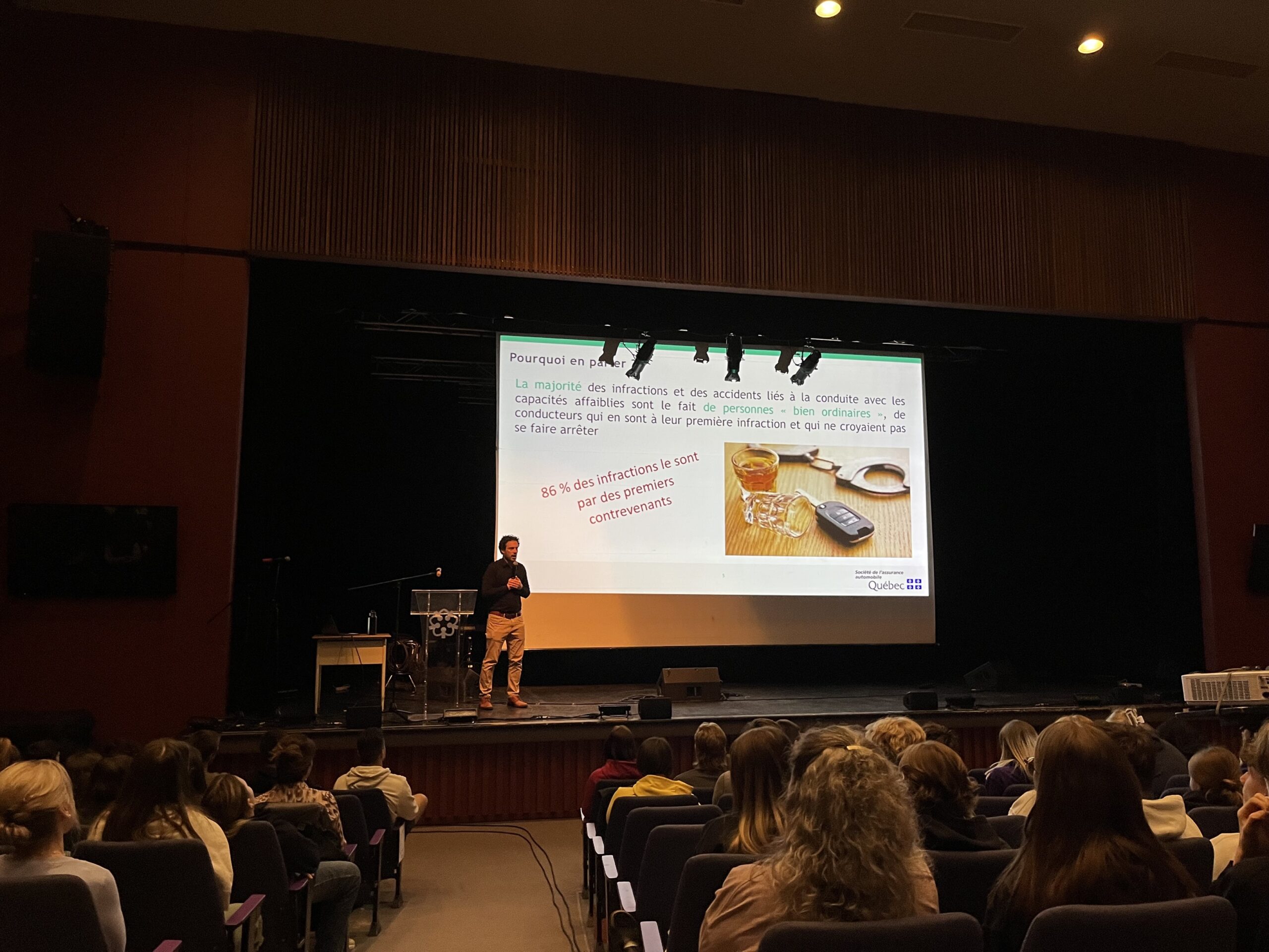 Au cours de cette demi-journée, les jeunes ont entendu les témoignages d’un policier de la Sûreté du Québec, d’une paramédic, d’un représentant de la SAAQ, mais aussi de personnes qui ont été touchées de près par un accident en lien avec la conduite avec facultés affaiblies.
