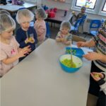 Les élèves de 4 ans ont vécu des activités de cuisine communautaire : de la liste d’épicerie, aux achats, en passant par la fabrication, pour ensuite redonner aux Frigos-partage. Quelle fierté de cuisiner ensemble et de savourer nos créations! Bravo les cuistots!